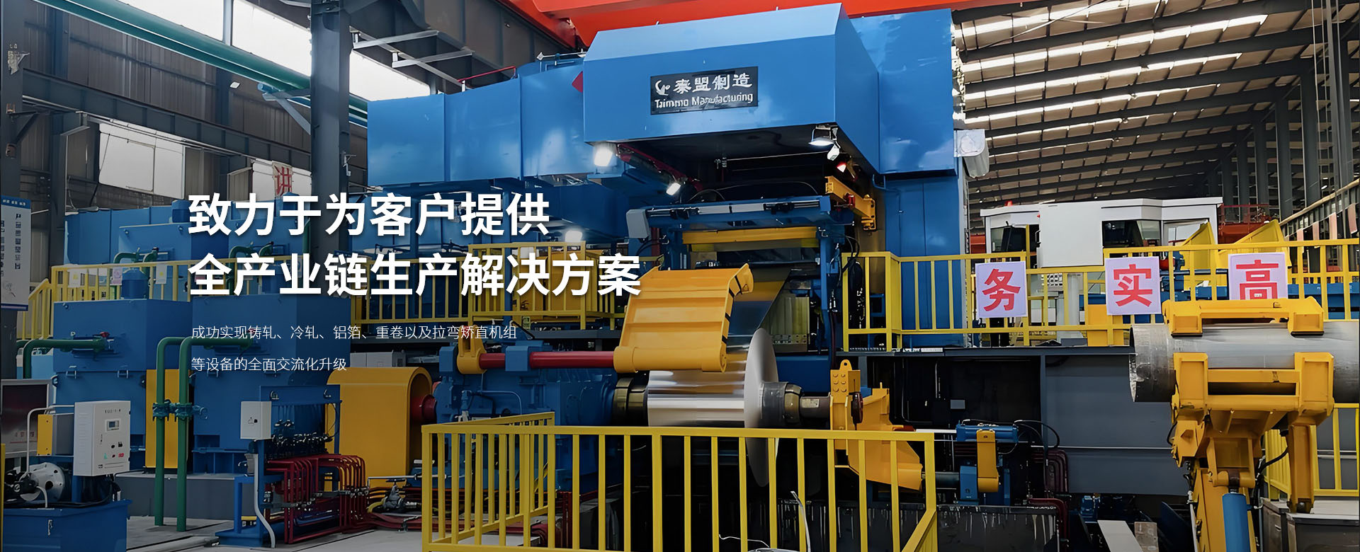 洛陽泰盟機械制造有限公司成立于2008年12月位于中國(河南)自由貿(mào)易試驗區(qū)洛陽片區(qū)高新開發(fā)區(qū)青城路1號,緊鄰洛陽繞城高速高新區(qū)站和高新區(qū)主干道河洛路,地理位置優(yōu)越。擁有固定資產(chǎn)5000萬元,屬于有限責任公司、民營企業(yè),高新技術(shù)企業(yè),公司已通過ISO9001質(zhì)量管理體系認證。 公司主要部門有銷售部、設(shè)計部、生產(chǎn)部、采購部、財務(wù)部。公司主要為鋁加工企業(yè)提供規(guī)劃布局,為鋁加工企業(yè)提供生產(chǎn)用的整套裝備的設(shè)計、制造、安裝調(diào)試,承接鋁加工生產(chǎn)裝備交鑰匙工程。 為主要客戶明泰鋁業(yè)、東興嘉宇、鑫泰鋁業(yè)、桐昆集團、大亞新能源、中州鋁業(yè)、銘島鋁業(yè)、廣東三英、云鋁股份、佛山鋁業(yè)、萬達鋁業(yè)、金濤集團、山東創(chuàng)新、龍鼎鋁業(yè)及國內(nèi)其它鋁加工企業(yè)配套生產(chǎn)各種鋁鑄軋機、冷軋機、箔軋機、熱軋機組及其精整設(shè)備拉彎矯直機、橫切機、重卷機、輥涂線、開卷機、卷取機、聯(lián)合齒輪箱等,廠區(qū)占地面積82畝,定員115人,設(shè)有獨立的鉚焊車間,裝配車間配有裝配平臺,液壓泵站,整套設(shè)備出廠前經(jīng)過整體試裝并液壓試動作。公司設(shè)備有110鏜床、130鏜床、160落地鏜床、200落地鏜床、1.6米*6米臥車、1.3米*5米臥車、2米滾齒機、4*10米數(shù)控龍門加工中心及其它輔助設(shè)備。 公司成立以來設(shè)計制造的寬幅2450㎜連鑄連軋機組。國內(nèi)現(xiàn)有生產(chǎn)速度較快(每分鐘3.2米),較薄(2.8mm)的高速鑄軋機組。 目前的綠色短流程60條連鑄連軋機組,全交流冷軋機組、2000/2200鋁箔軋機以及2300六輥冷軋機組,得到了客戶的高度認可。 目前,我公司已成功實現(xiàn)鑄軋、冷軋、鋁箔、重卷以及拉彎矯直機組等設(shè)備的全方面交流化升級。這一重要舉措不僅有助于客戶顯著降低生產(chǎn)成本,還能有效提升其經(jīng)濟收益,從而在激烈的市場競爭中占據(jù)更有利的位置。通過設(shè)備的交流化改造,我們致力于為客戶提供更加有效、節(jié)能且穩(wěn)定的全產(chǎn)業(yè)鏈生產(chǎn)解決方案,共同邁向更加繁榮的未來。